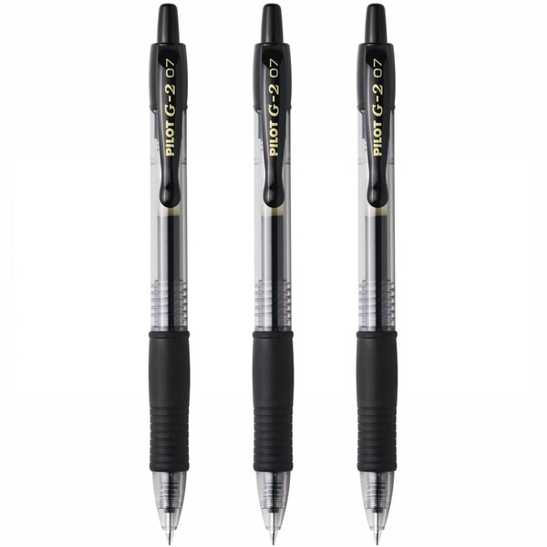 PILOT G-2 0.7mm FINE RETRACTIBLE PEN - BLACK (3 PACK)