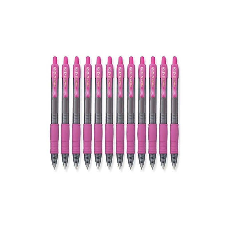 Pilot G2 Pink Gel Pen, Retractable, Rubber Grip, 0.7mm Fine Point, Dozen (31174)