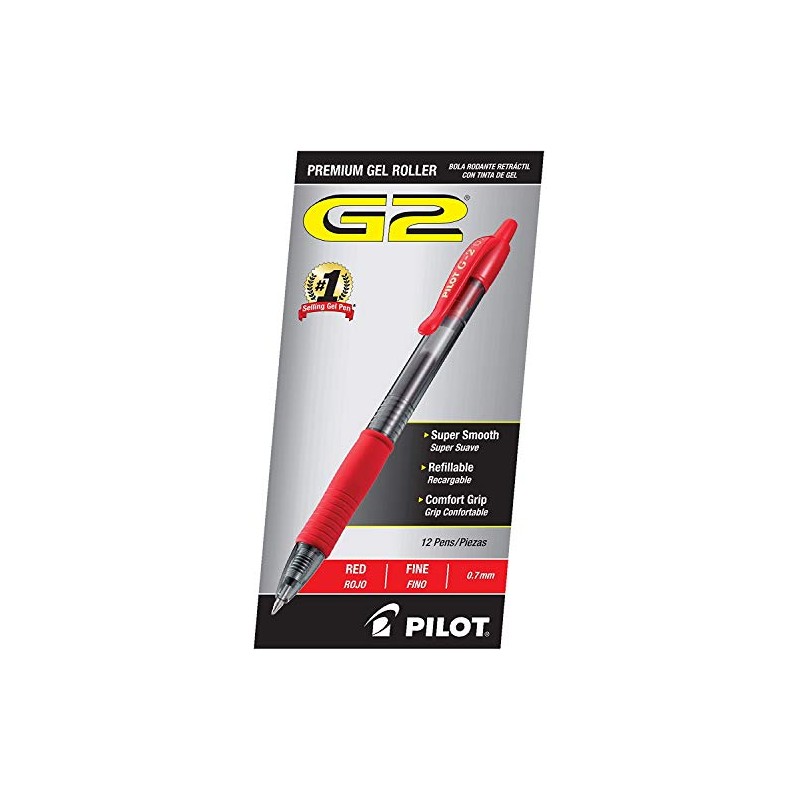 PILOT G2 Premium Refillable & Retractable Rolling Ball Gel Pens, Fine Point, Red Ink, 12 Count - 1