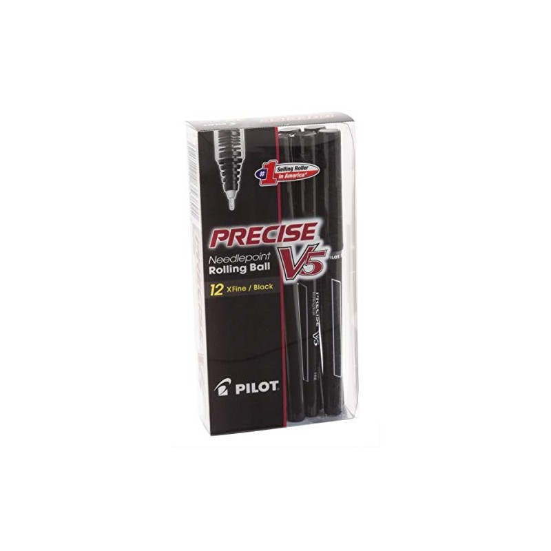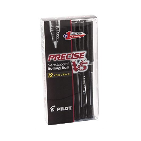 Pilot Precise V5 Needlepoint Rolling Ball Point Pen, Extra Fine, Black, 12 Count