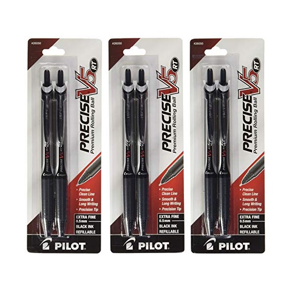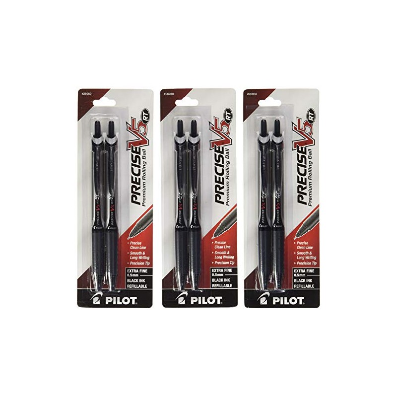 Pilot Precise V5 RT Retractable Rolling Ball Pens, Extra Fine Point, Black Ink, 6 Pens