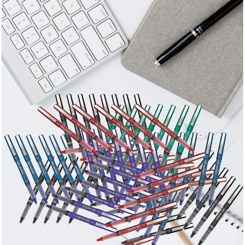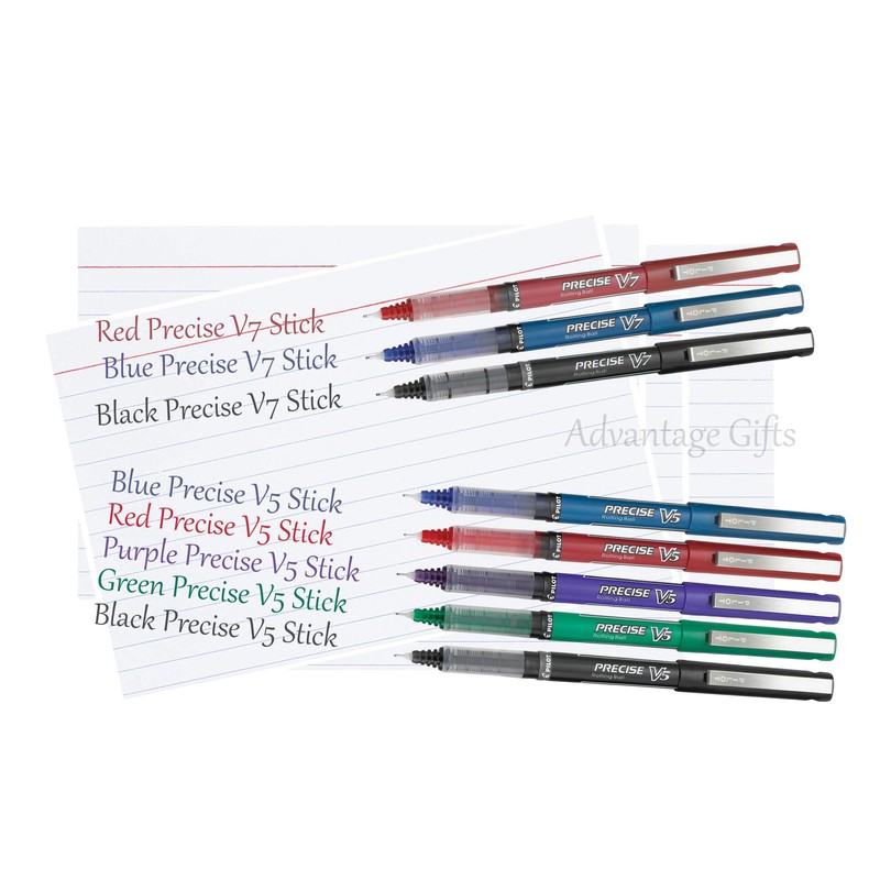 - PEN GAME ON POINT: It doesn't matter if you're at school, at work, in the office or writing in your Bullet Journal at home, Pilot Precise V5 and V7 Stick Rolling Ball Pens are comfortable and flow smoothly & evenly in blue, black, green, pink, even purple!
