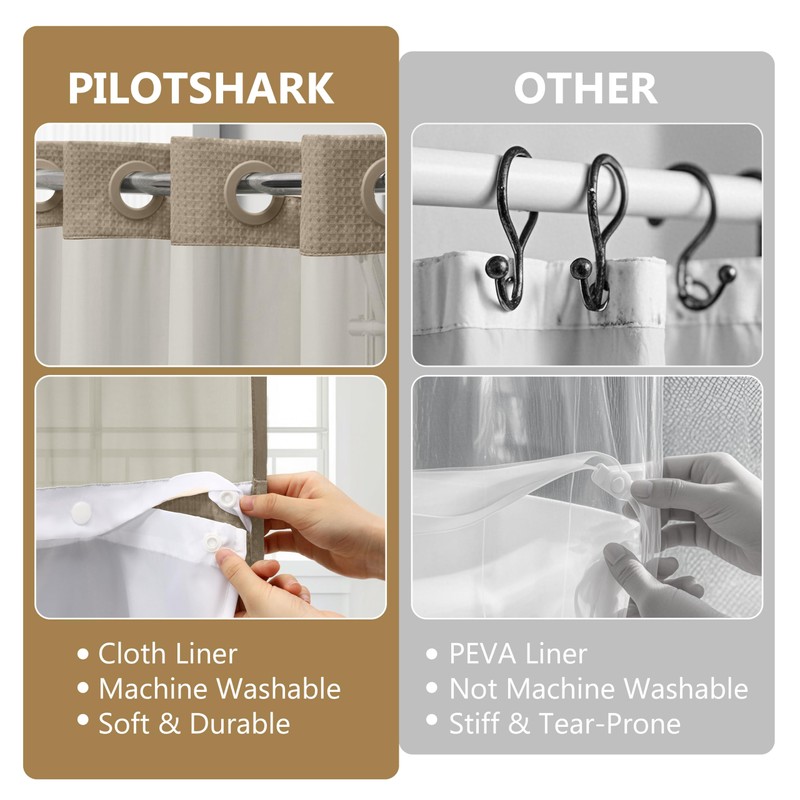 PILOTSHARK Hookless Waffle Weave Shower Curtain Set with Snap-in Fabric Liner...