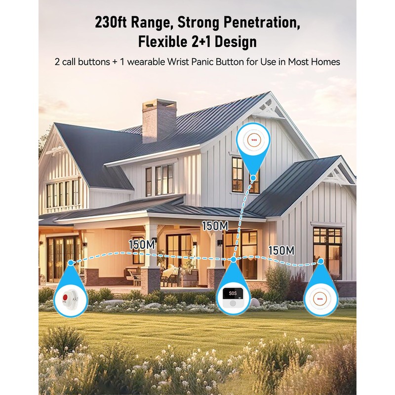 - Multi-Channel Instant Alerts: Press any panic button to trigger a loud alarm with flashing lights and instantly receive an app notification on your phone. Share notifications with family via the app; Note: SMS, phone, email require subscription
