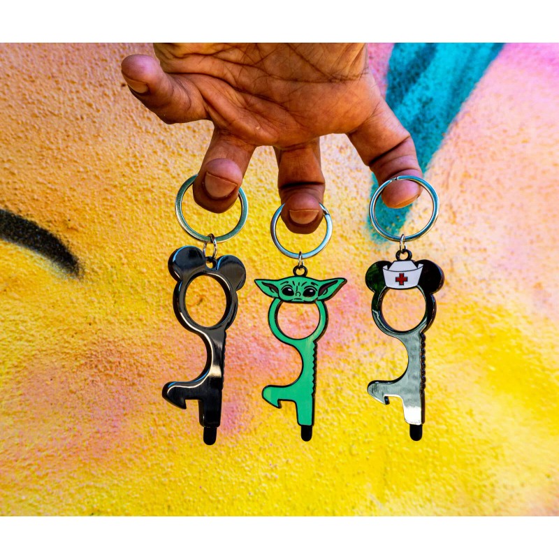 Pin Lounge Mickey Head Door Opener With Stylus Tip , touchless keychain Bottle Opener