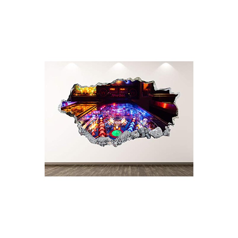 Pinball Game Wall Decal Art Decor 3D Smashed Arcade Sticker Mural Custom Gift BL104 (70"W x 40"H)