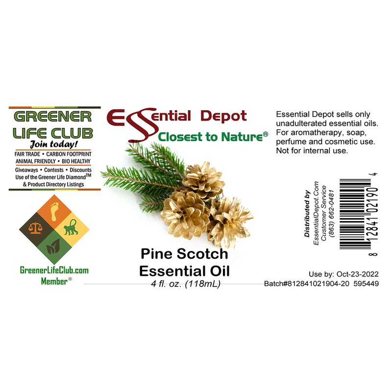 Pine Scotch Essential Oil - 4 oz - GC/MS Tested - Supplied in 4 oz. Amber Glass Bottle with Black Phenolic Cone Lined and Safety Sealed Cap