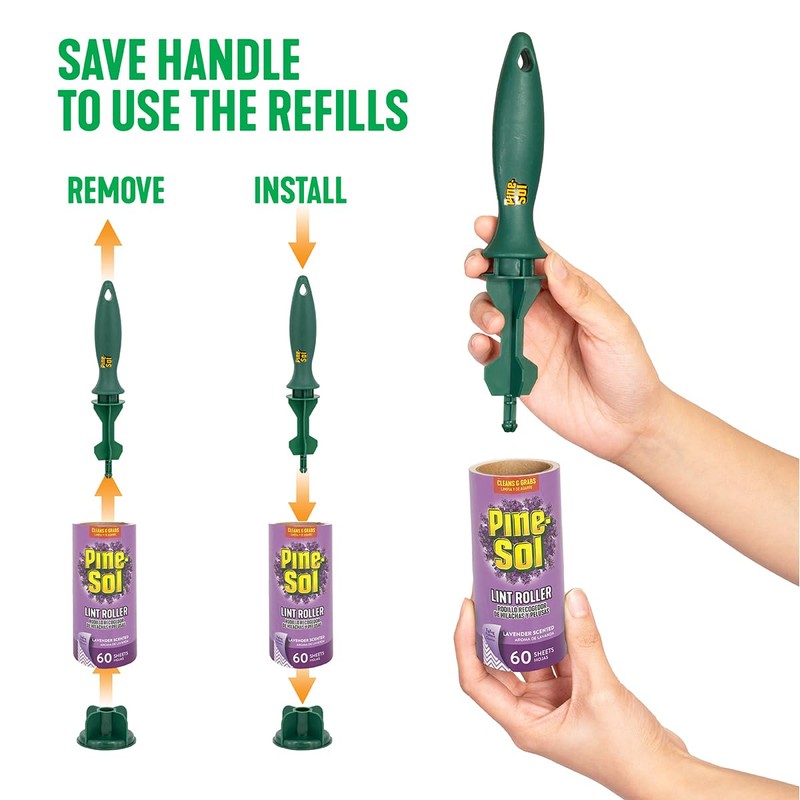 Pine-Sol Scented Lint Roller – Lavender, 60 Super Sticky Sheets – Fabric Safe, Zig-Zag Pattern