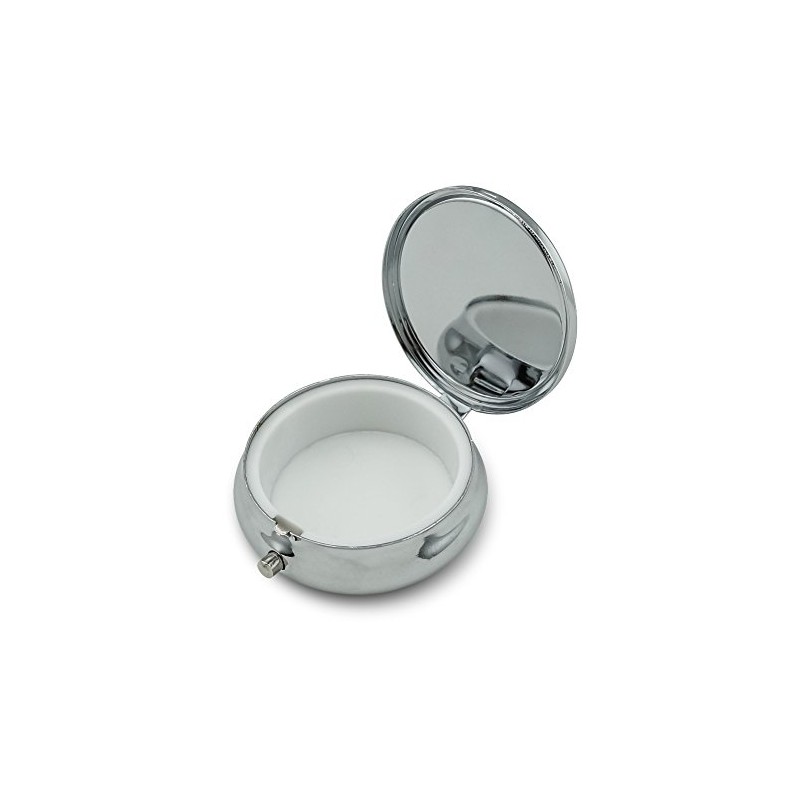- The case is made of chrome-plated metal with a plastic insert to hold your items. The inner dimensions of the case are approximately 1.5" (3.8cm) in diameter and 0.5" (1.3cm) in depth.
