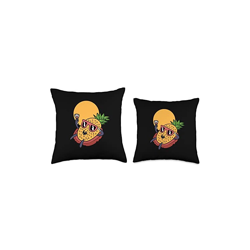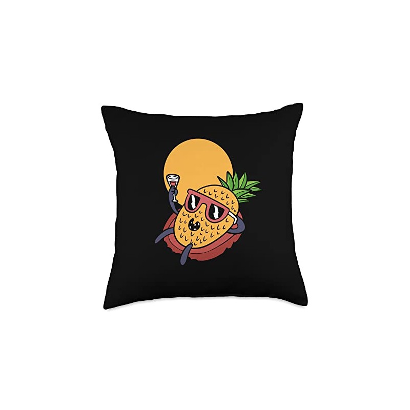 Pineapple Relaxing Beach Umbrella, Palm Trees, Sun Pineapple Relaxing Beach Lover Or Tourist Throw Pillow, 18x18, Multicolor