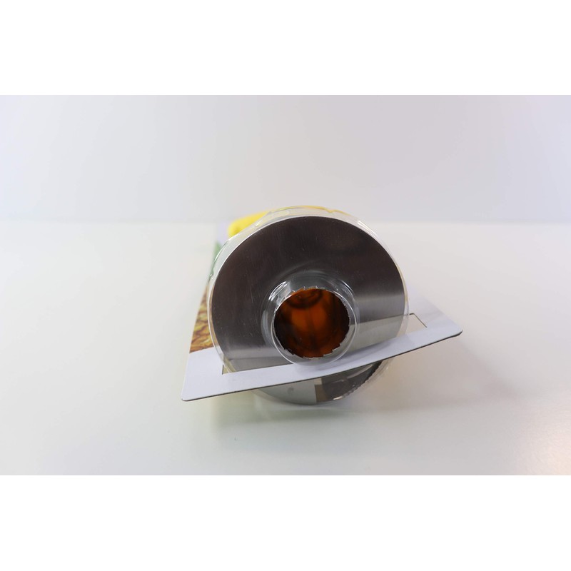 - Stainless steel body and yellow plastic handle