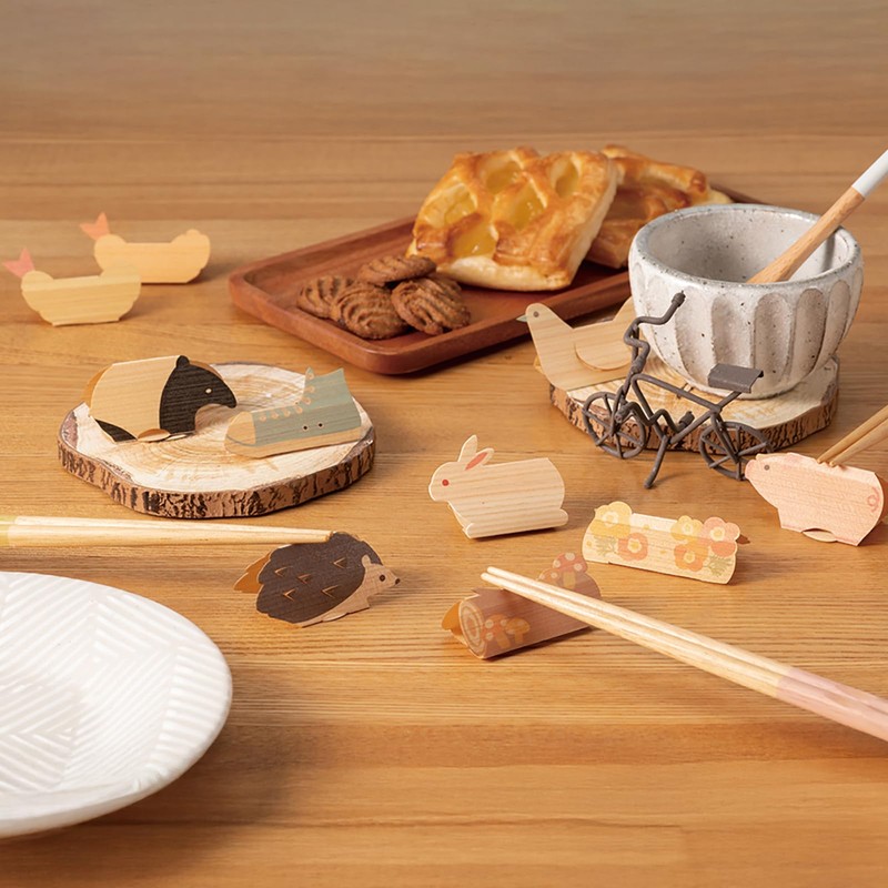 PINGTO O-00881 Kico Kiko Wooden Paper Chopsticks Rest Handmade Kit, Set of 4,...