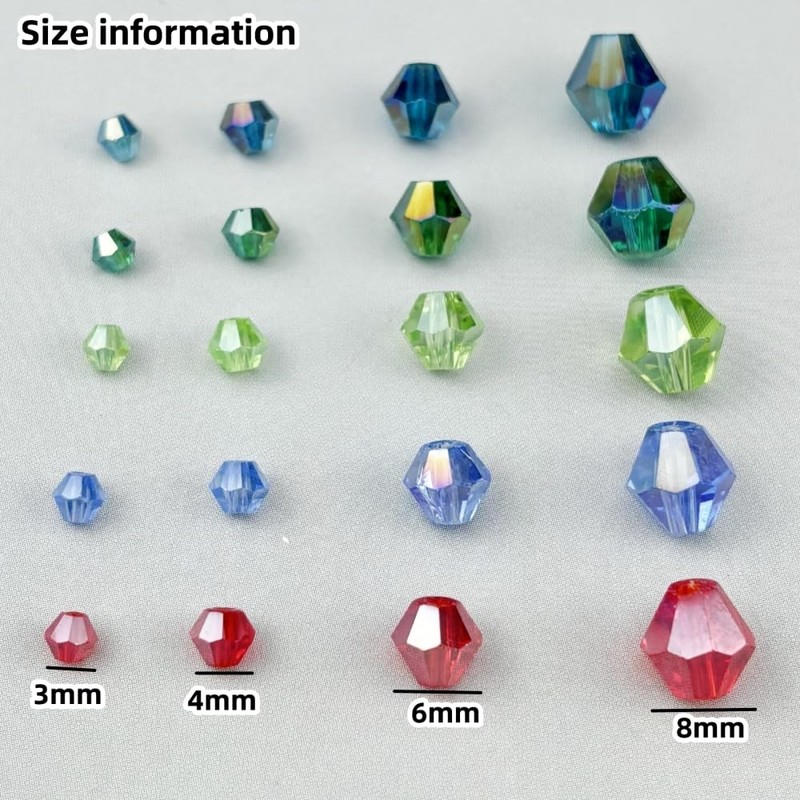 - Package Include: 100pcs 8mm bicone crystal glass beads, which can meet your various needs, enough for your spare and replacement, keep a long time use. These glass beads have different colors and size to choose, look so very cute and beautiful, good for jewelry making.
