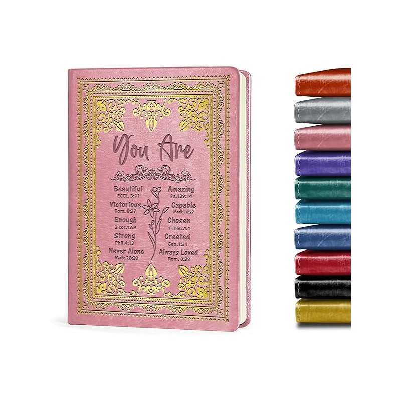 Pink A5 Lined Leather Journal Notebook,Inspirational Christian Gifts Hardcover Executive Notebooks for Men Women,200 Pages 100 Gsm Thick Ruled Paper Daily Diary for School,Family ,Friends,Work (You Beautiful Pink)