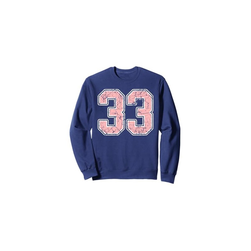 • Distressed Pink and White 33 Jersey Player Uniform #33 Favorite Player Biggest Fan Gifts Sports Team! Team Color Football Halloween Costume or game day tailgate party. Team jersey or sports team uniform big matching number for group or team building.
