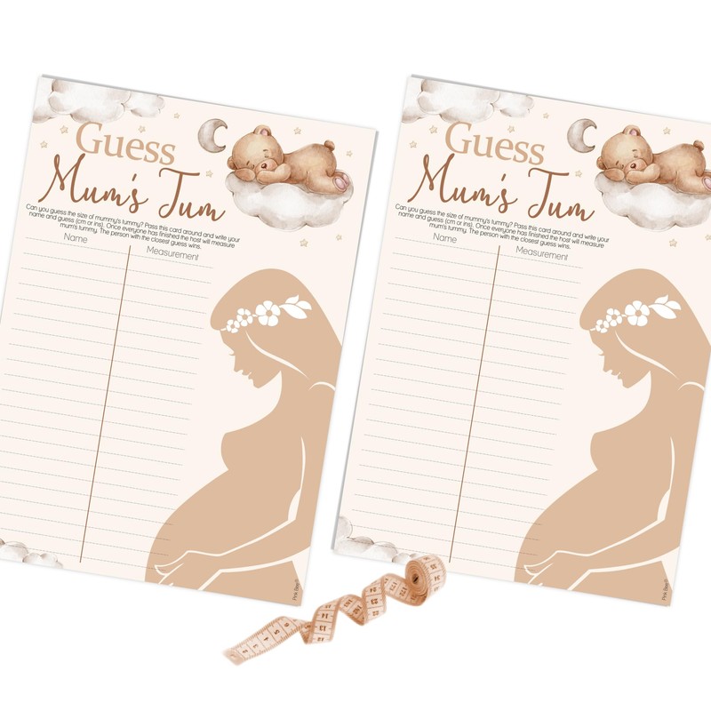 - 🧸 FUN GUESSING GAME - Party guests can put their guessing skills to the test with the Teddy Guess Mums Tum Game! They'll have fun trying to estimate the size of the mummy-to-be's bump. After everyone has added their guess to the answer card the host can use the included measuring tape to reveal the official measurement.