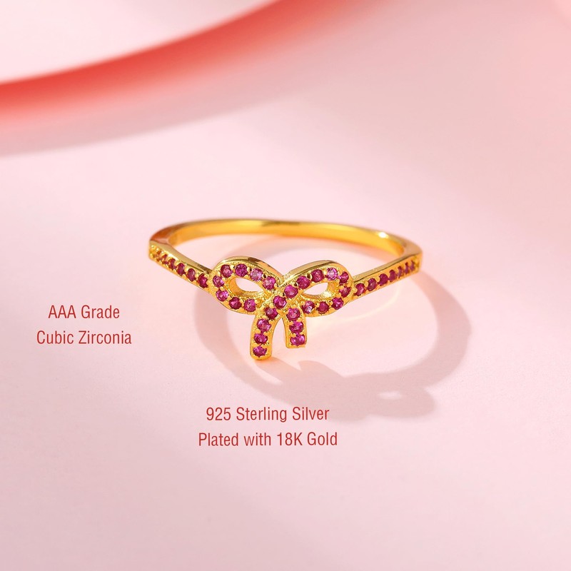 Pink Bow Ring 14k Gold Plated S925 Sterling Silver Bow Rings for Women Cubic Zirconia Ribbon Rings Gold Bow Tie Kont Ring Jewelry Gift For Friends (Pink, 5)