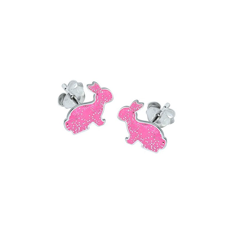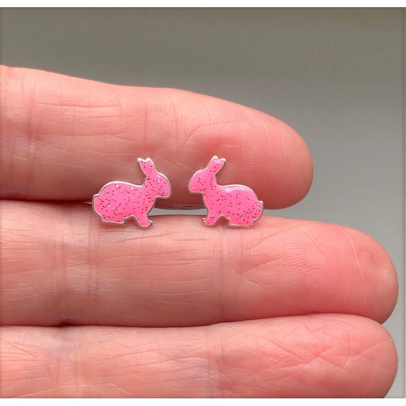 Pink Bunny Rabbit Earrings with Sparkly Glitter - 925 Sterling Silver