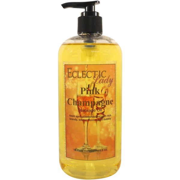 Pink Champagne Massage Oil, 16 oz, With Sweet Almond Oil and Jojoba Oil, Preservative Free, Perfect for Aromatherapy and Relaxation