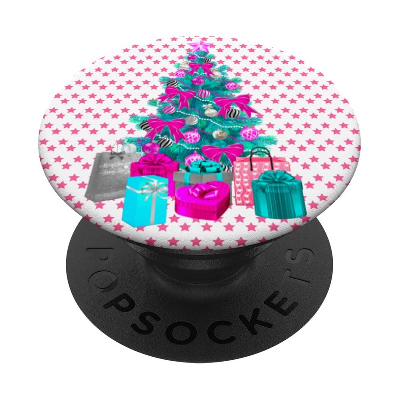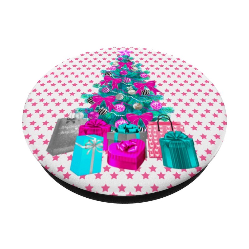 Pink Christmas Tree Xmas Holiday Aesthetic Teal Preppy Glam PopSockets with Interchangeable PopGrip