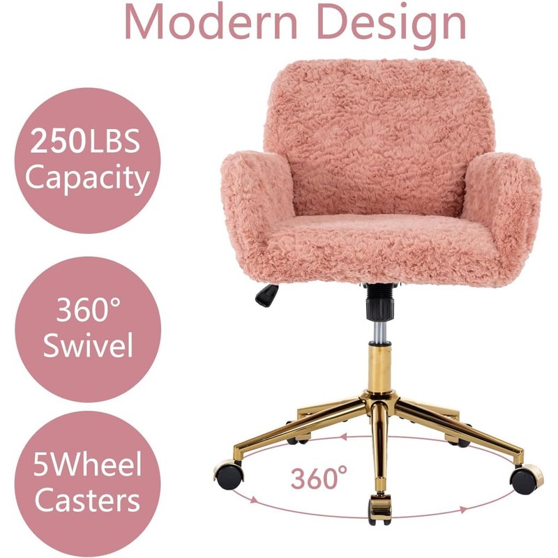 - ✔ Style: Modern Faux Fur office chair with gold base