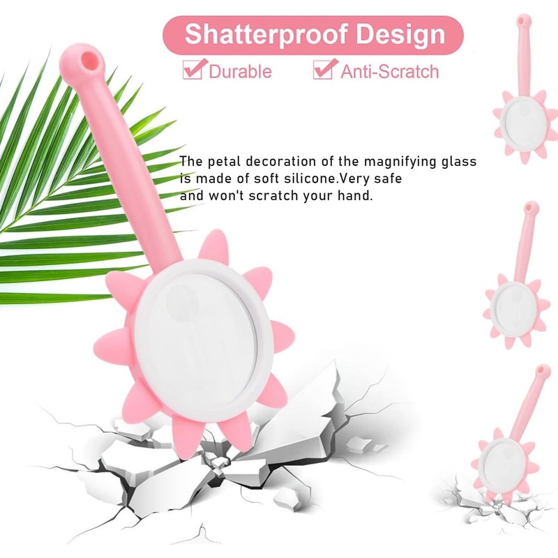 - 【Handle】This magnifying glass has a flower-shaped frame, which is childlike and can stimulate children's interest in nature and science. The handle is non-slip design, easy to use.