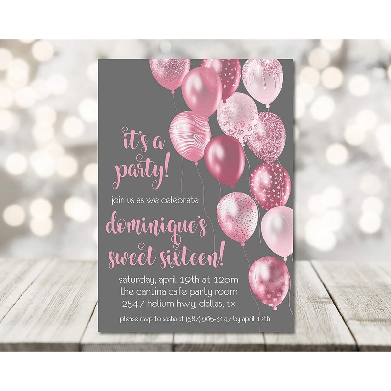 Pink Sweet 16 Invitations, Rose Gold Sweet 16 Invitations With Envelopes (Rose Pink/Grey)
