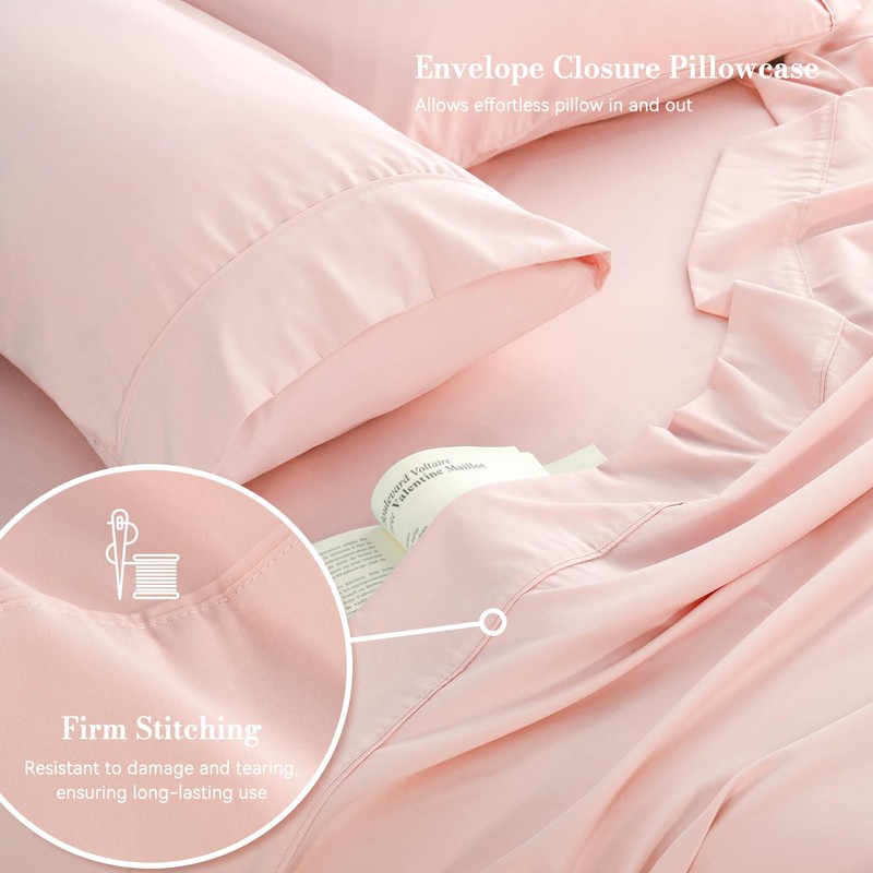 Pink Twin Sheet Set 3 Piece, Soft Breathable Cooling Microfiber Bed Sheets with Extra Deep Pocket 16'', Easy Care Luxury Hotel Bedding, Oeko-Tex Certified Wrinkle Free