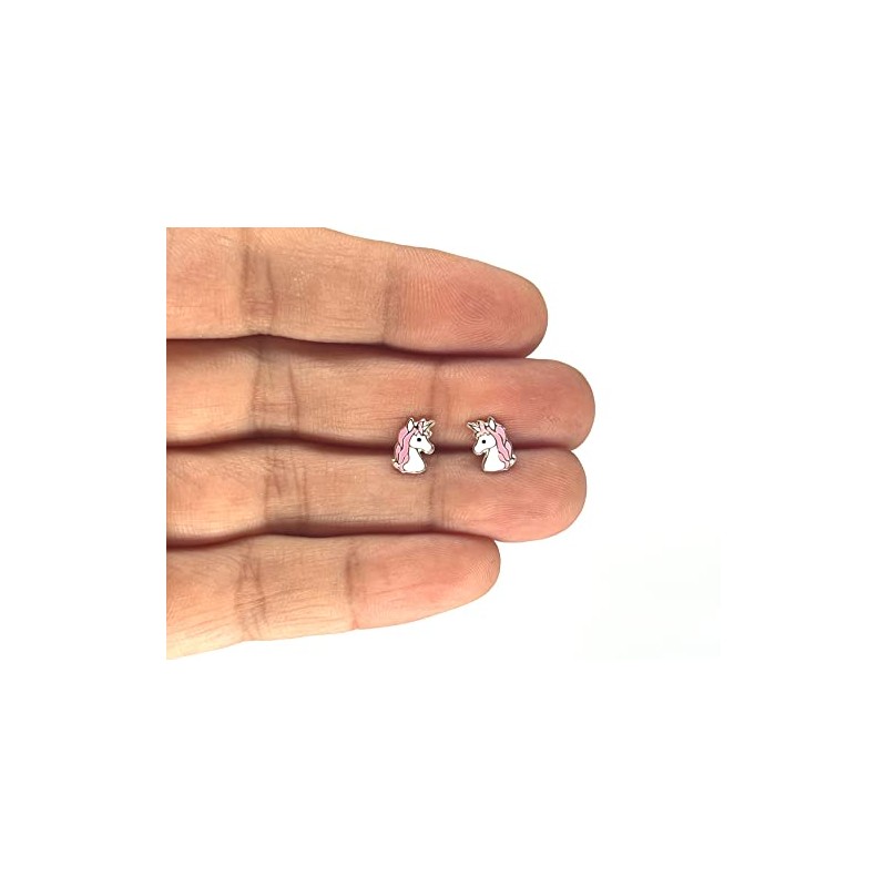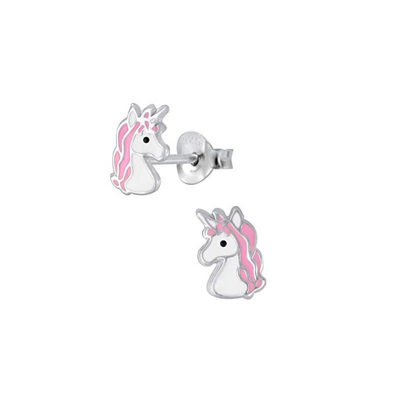 Pink Unicorn Pony Head Earrings - 925 Sterling Silver