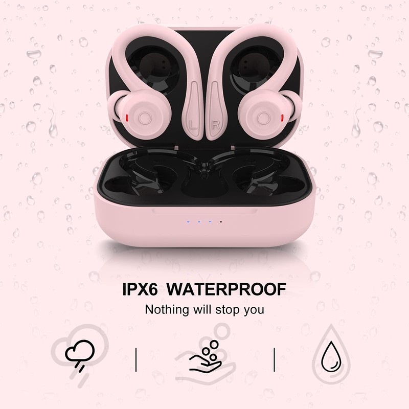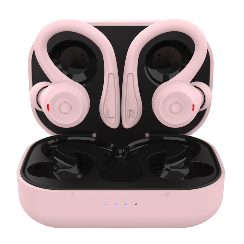 Pink Wireless Earbuds with Earhooks Bluetooth Earbuds with Ear Hook Waterproof Sport Headphones Noise Cancelling Ear Buds with Microphone Long Battery Life Earphones for Running Workout Android iOS