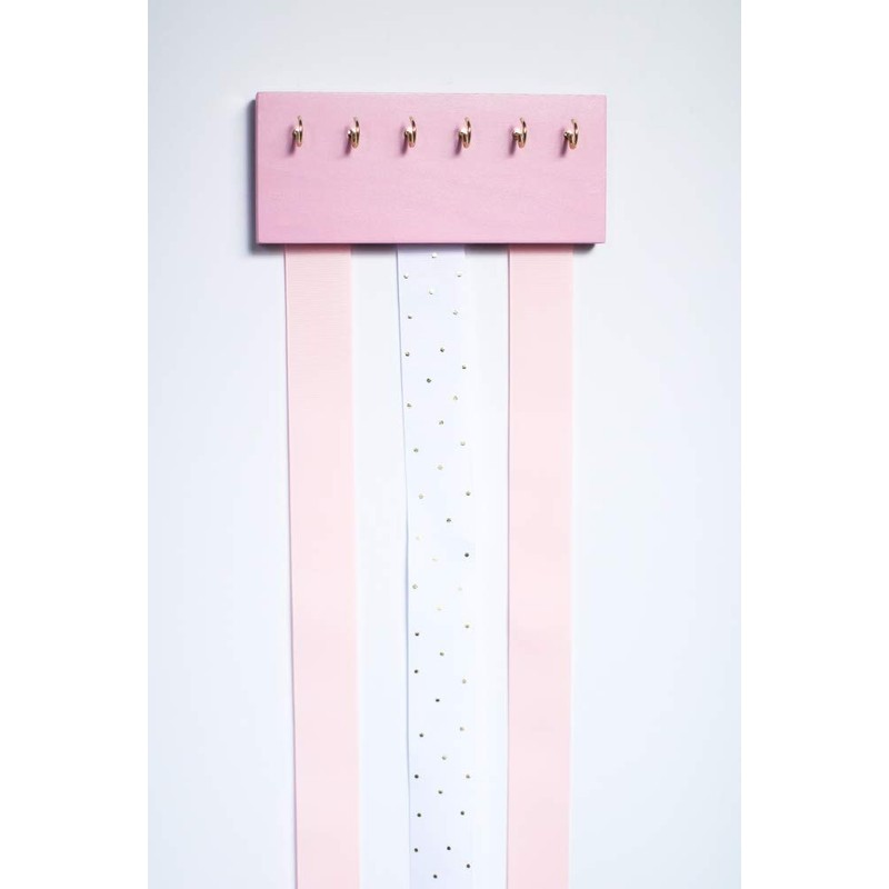 Pink Wood Long Ribbons Bow Organizer Headband Holder Poplar Plaque Hooks Organizer Handmade High Quality Nursery Girls Room Decor (pink wood pink white ribbon)
