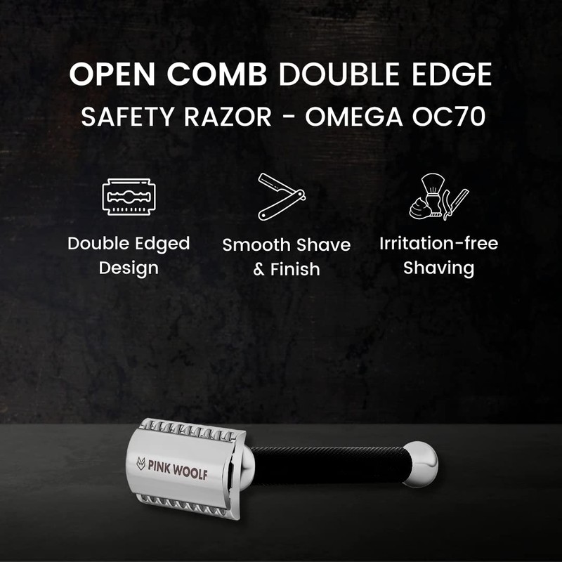 - The Pink Woolf Open Comb OC 70 Safety Razor provides a medium cut shave that works well for new and experienced wet shavers