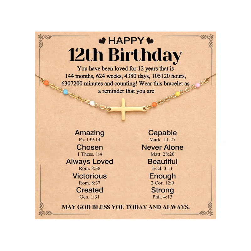 - HAPPY 12TH BIRTHDAY: Perfect for a 12th birthday celebration, this bracelet is a heartfelt gift for a young girl. The card reminds her of her worth, strength, and the love that surrounds her