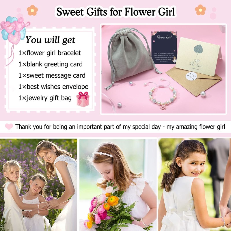 - 【Adorable Flower Bracelet】-- Flower who serve as the bringing of happiness at weddings will be decked out in cute jewelry like our flower girl bracelet. This cute flower charm bracelet is the perfect way to express your love and gratitude to the flower girl. Thanks to her for being an important part of your special day.