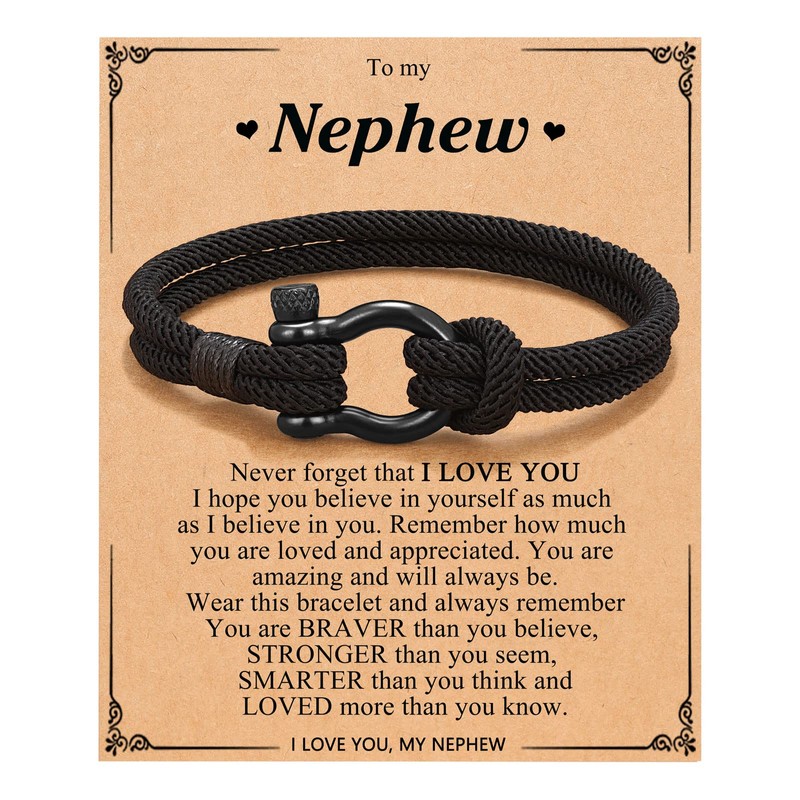- [To My Nephew] - This bracelet has a simple and unique design with a text card that says "I hope you believe in yourself as much as I believe in you. Remember how much you are loved and appreciated. you are amazing and will always be." Great inspirational gift for nephew boys and let him know that he is important for you.