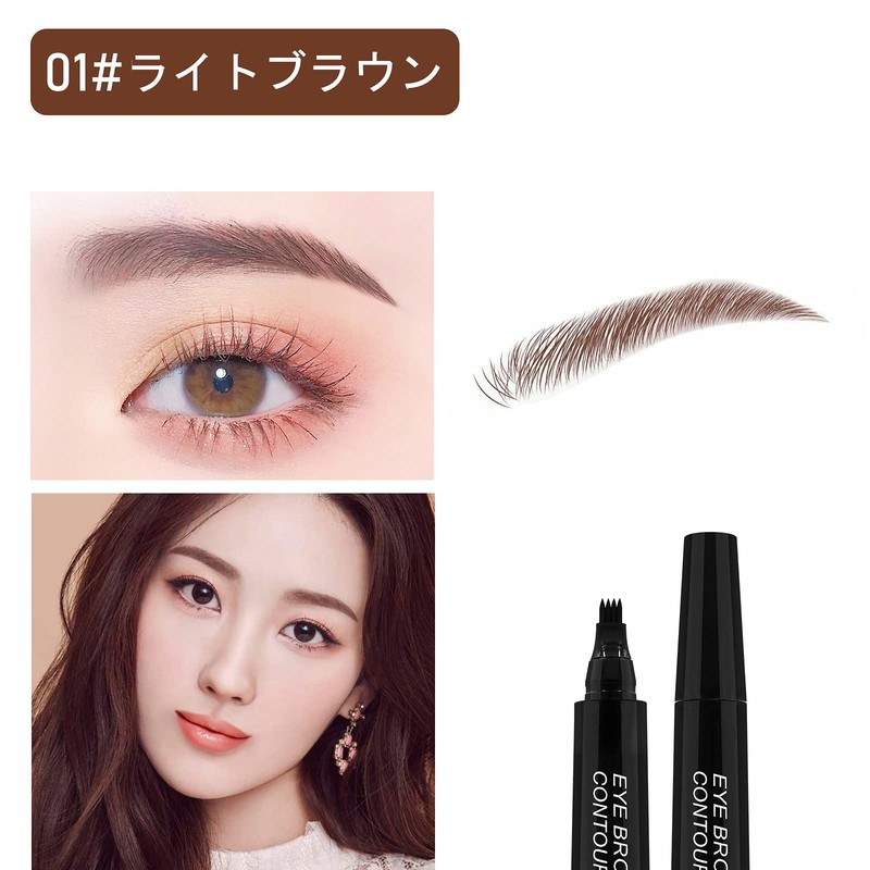 Pinkiou Eyebrow 4D Liquid Eyebrow Pencil 4 Nib No Fall Micro Fork Tip Liquid Long Lasting Natural Eye Makeup Waterproof Cosmetic Makeup Pen Popular (01# Light Brown)
