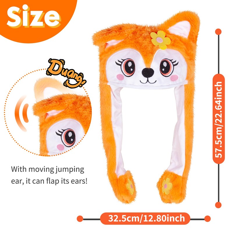 - 【Plüsch Cartoon Tier Hut】 Hergestellt aus samtig-weichem Plüschmaterial. Mit beweglichen springenden Ohren, kann es seine Ohren flattern! Drücken Sie die Pfoten, die Ohren auf der gleichen Seite werden sich auf und ab bewegen, sehr lustig.