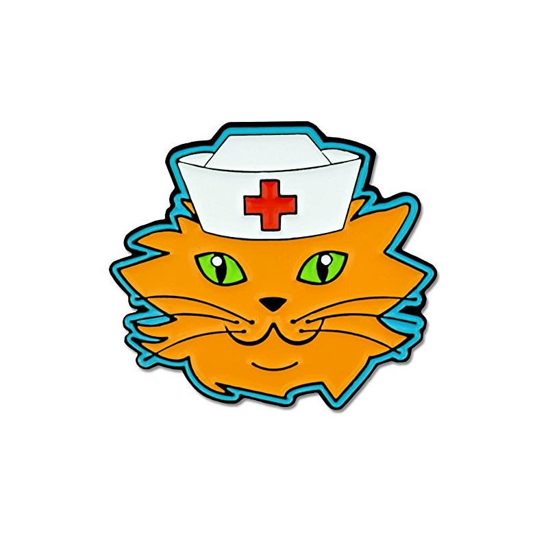 - Our Nurse Cat Pin does everything; nursing, celebrate graduations, and loves the holidays! She can be used for recognition and reward or great to add to your collection wall! This Nurse Cat Pin is made of fine jeweler's metal, soft enamel filled with crazy cat colors, and black dye plated.