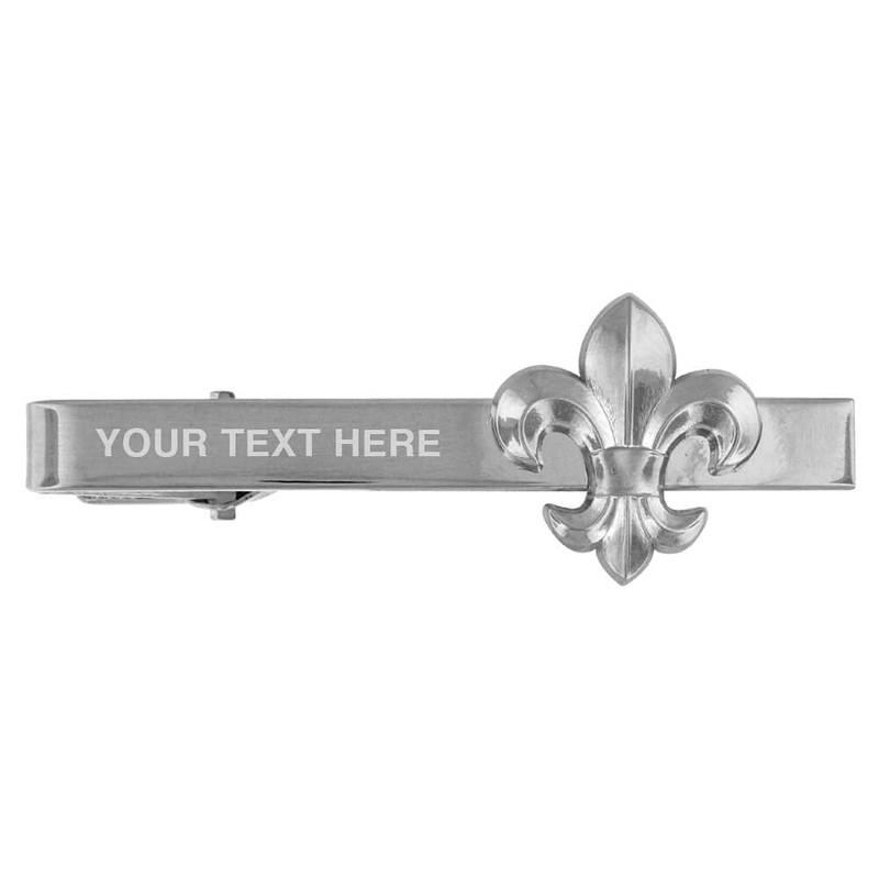 PinMart Silver Fleur De Lis Iris Engravable Tie Clip Bar