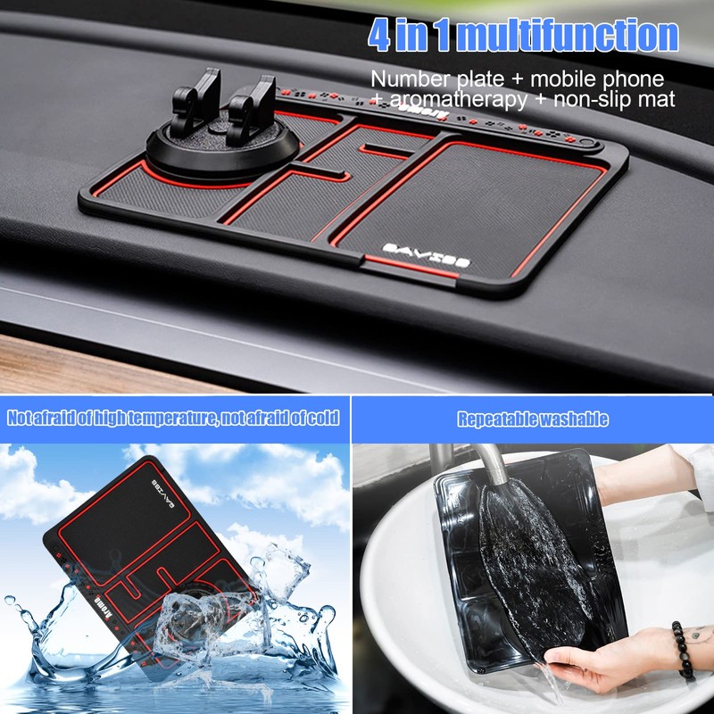 • 4-in-1 design: Our non-slip dashboard phone pad is versatile and includes a swan shaped phone holder, a non-slip pad, a temporary parking number plate and an integrated aromatherapy box. It is convenient to navigate with your phone while driving, and on the non-slip pad on the right side can hold wallets, keys, phones, etc.