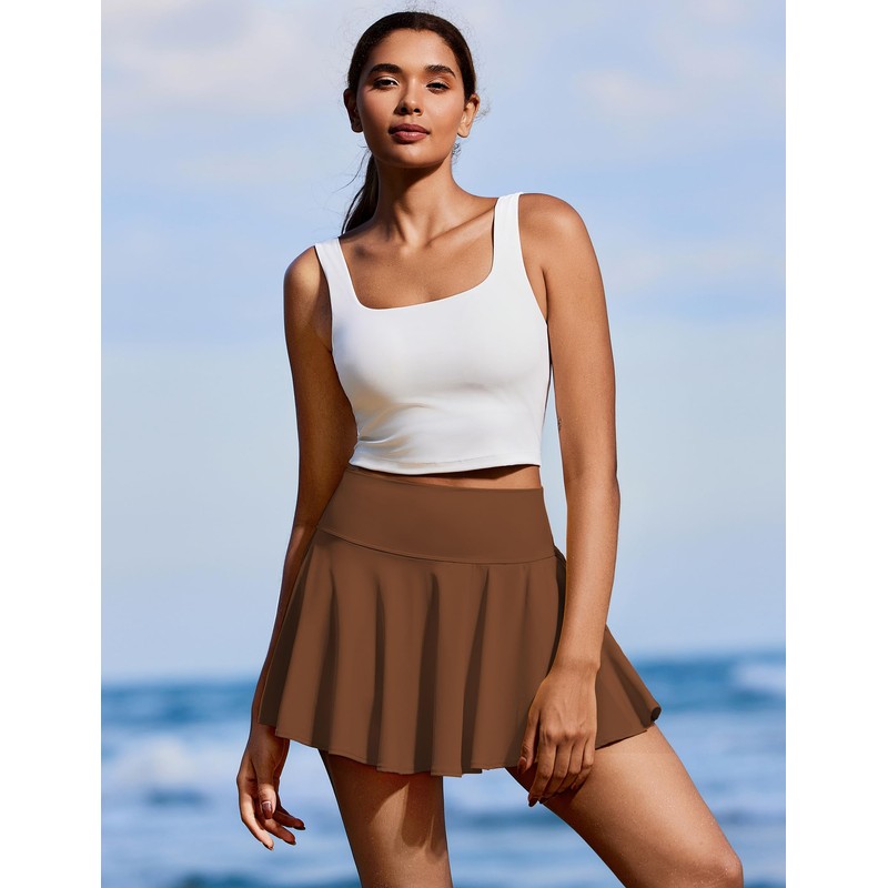 PINSPARK Womens Golf Skorts with Shorts Lightweight Tennis Skirts Pleated Mini Athletic Skirt, Brown XS