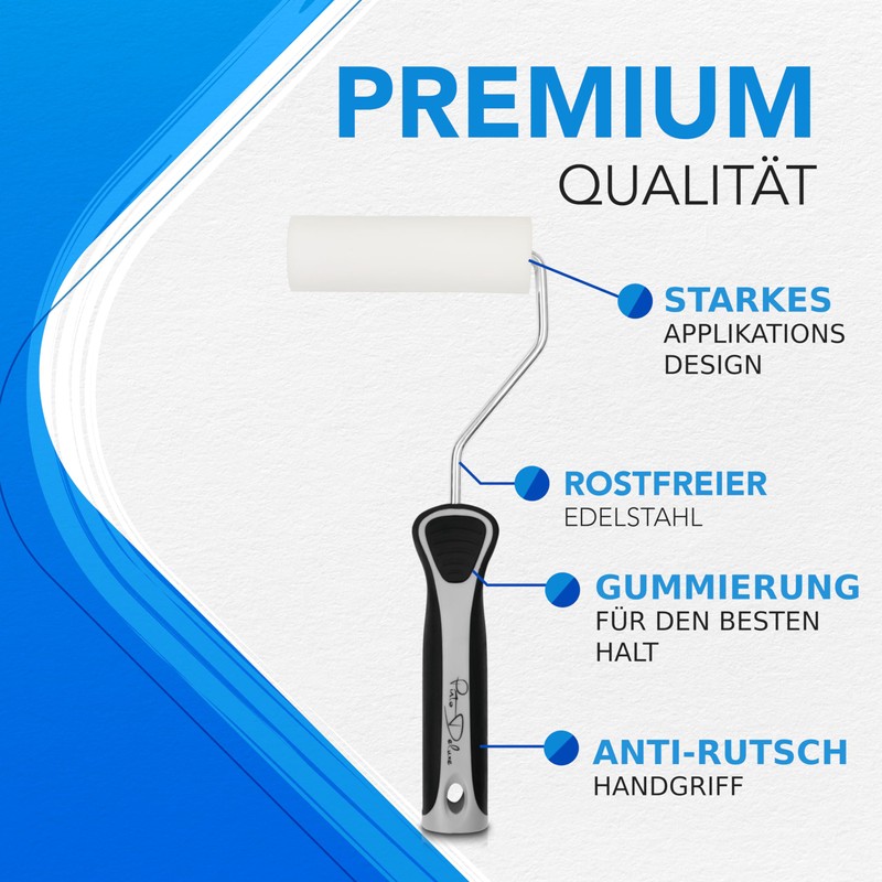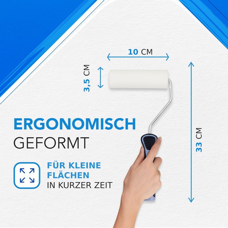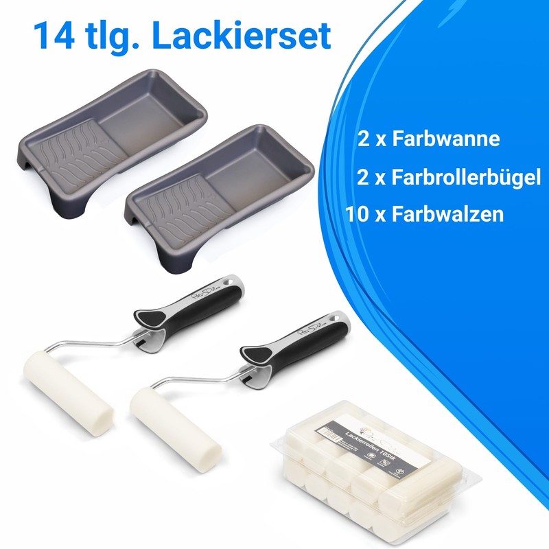 Pinto Deluxe® Paint Set: 10 x Foam Rollers 11 cm Fine Straight / 2 x Paint Roller Brackets / 2 x Paint Tray / Paint Roller / Paint Roller / Paint Roller Bracket