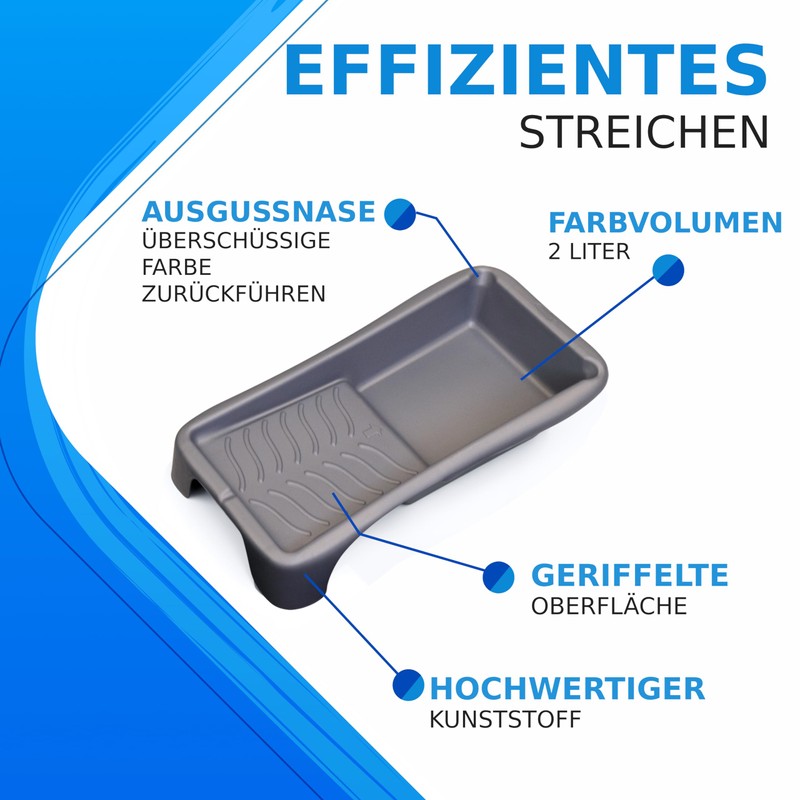 - Easy to use: thanks to the well thought-out paint trays, excess paint is easily drained and evenly distributed on the rollers.