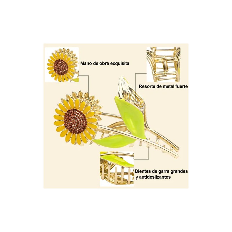 Concepto de diseño de pinzas para el cabello de metal: inspirado en girasoles, trigo, margaritas, lirios del valle, mariposas, tulipanes, etc. La fuente del diseño de 6 formas de flores diferentes proviene de la vida cotidiana. La pinza para el cabello de metal está hecha de un lujoso color dorado, se ve vivaz y delicada, puede combinar con cualquier color de cabello y cualquier estilo de uso.