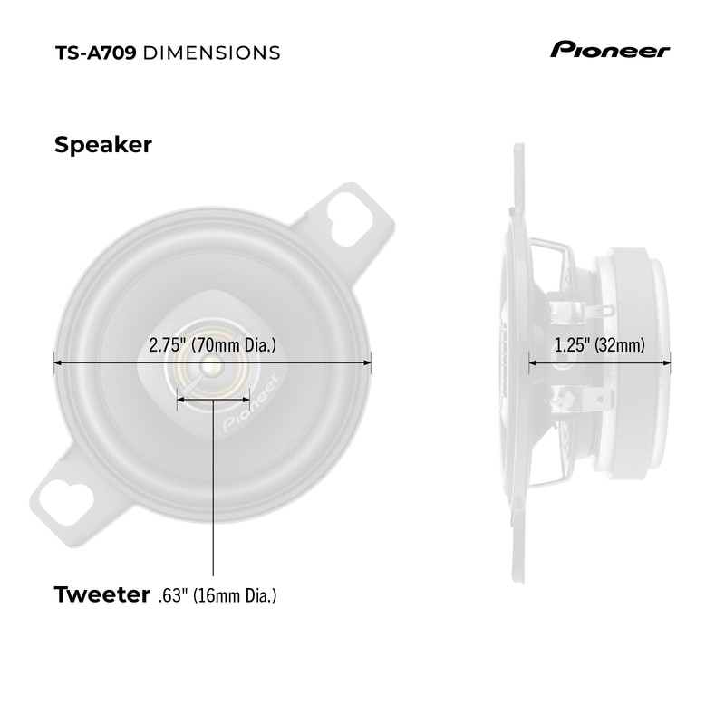 Pioneer A-Series Plus TS-A709 2.75" 2-Way Speakers (Pair) – 600W Max, Balanced Sound + Smooth Treble, Great Stock Replacement, Easy Installation