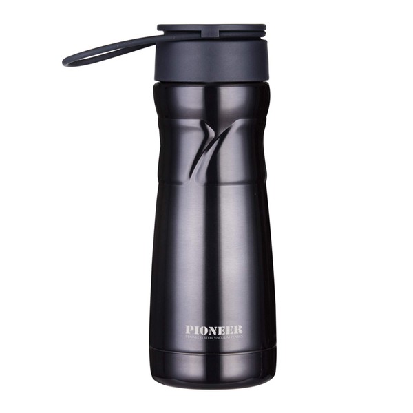 Pioneer STD450S Vacuum Insulated Stainless Steel Double Walled Drink Pod Flask with Rubber Handle and Strainer Hot and Cold for up to 8 Hours 100% Leak Proof 0.45 L – Slate
