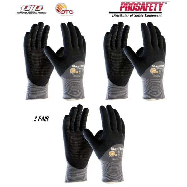 PIP 3- PIP 34-845 MaxiFlex Coated Dotted Palms Nitrile Grip PROTECTIVE WORK GLOVES - XLarge