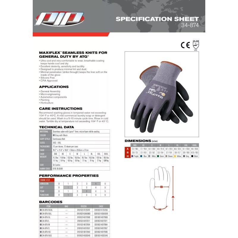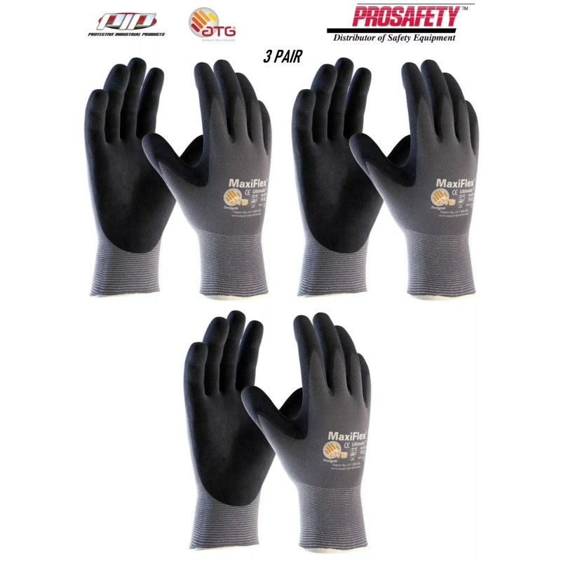 PIP 34-874 MaxiFlex Ultimate Micro Foam Nitrile Grip Coated WORK GLOVES 3 PAIR - 3XLarge