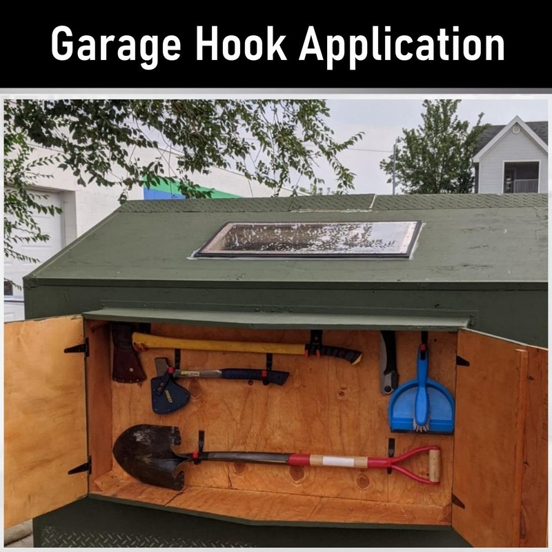 • Garage utility hook can install easily on stud walls, hardwood, block or brick.