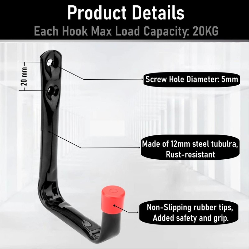 • Heavy duty storage hooks made of 16mm metal tubular, each hook holds up to 20 kg.